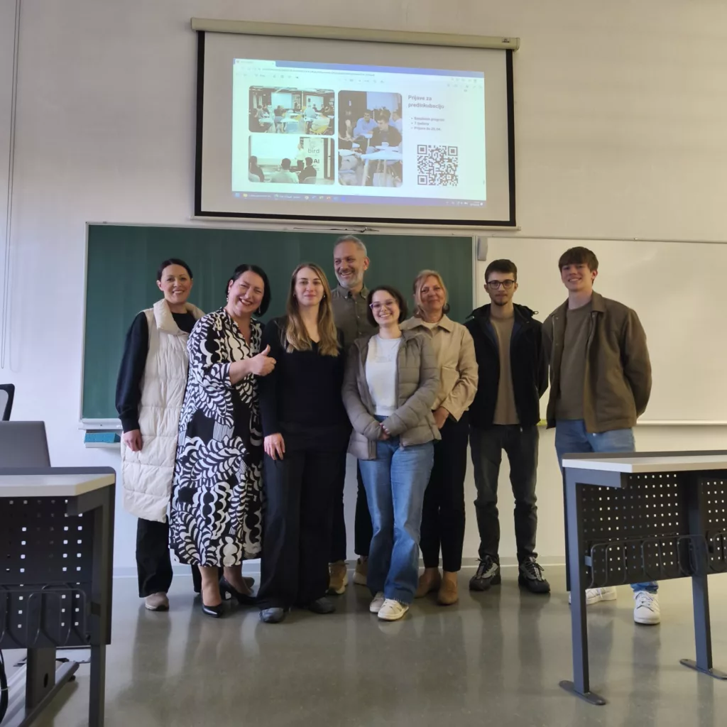 U organizaciji Ureda za karijeru, u suradnji s Bird inkubatorom, 21. travnja 2026. g. održana je radionica  „Kako prezentirati ideje i projekte: osnove startupa i pitchanja“, namijenjena studentima, uz sudjelovanje nastavnog osoblja i kolega iz drugih ureda.